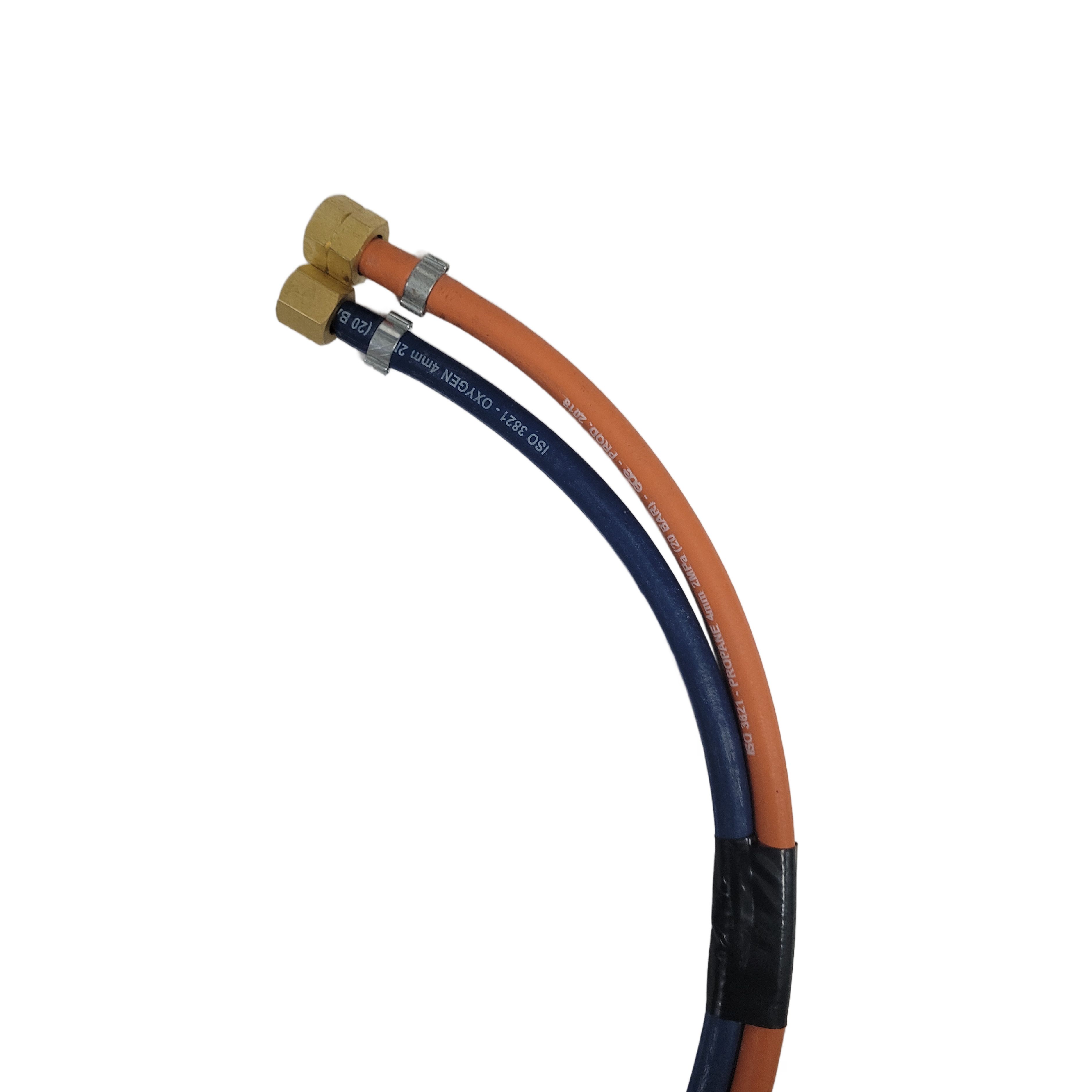 Szerelt hegesztő tömlőpár Oxigén 4mm - PB 4mm. HBSZ szerint a tömlők szakaszosan egymáshoz rögzítve